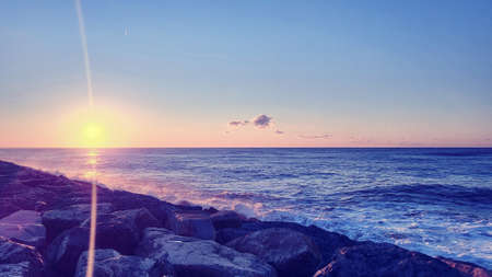view of mediterranean sea at sunrise in Guardamar, alicante. Spain