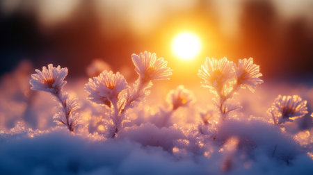 blooming flowers under winter solstice sunset, created with generative ai
