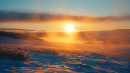 Golden sunrise illuminating a frosty landscape