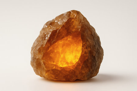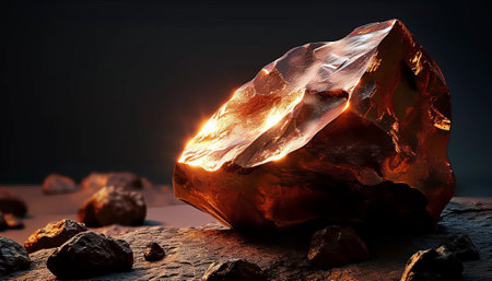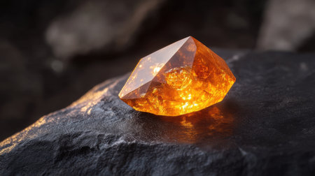 AI Generated. Stunning orange crystal glowing in the natural light on a rocky surface at a remote location