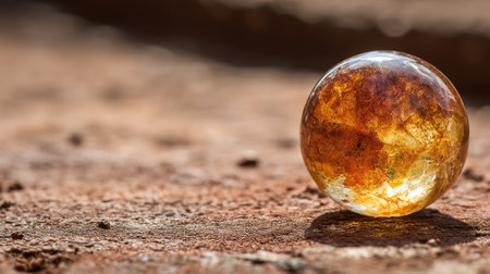 A stunning crystal sphere rests on a textured earthy surface, capturing light beautifully and showcasing vibrant colors and patterns.