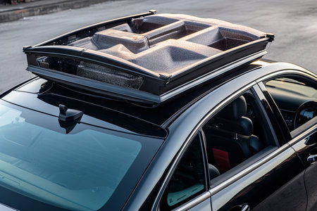 car with sunroof and speakers on the roof, ready for drive, created with generative ai