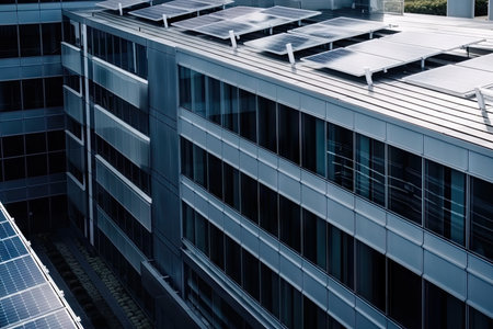 solar panel installation in modern office building, created with generative ai