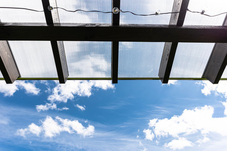 geometric pattern of greenhouse structure with clear sky