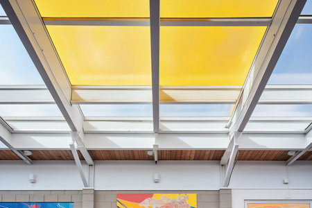 glass panel roof on a concrete retail space