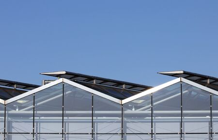 abstract architectural structure of glass and metal greenhouses in the netherlands