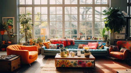 Eclectic Bohemian Living Room - AI Generated