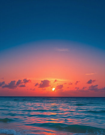 A breathtaking sunset paints the sky with vibrant hues while reflecting on tranquil ocean waters.