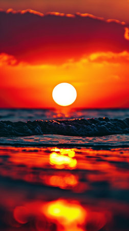 Majestic Sunset as the Sun Sets Over the Ocean With Waves