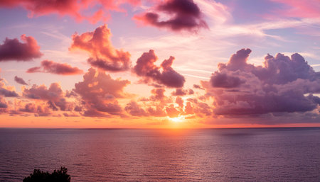 Witness the breathtaking beauty of a sunset painted across the sky. Perfect for travel, wellness, or design projects evoking peace and tranquility. Ideal for creating stunning visuals with a dreamy, romantic feel.