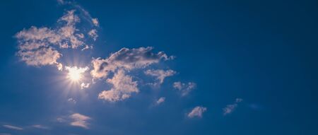 Sun is shining among clouds in the bright blue sky