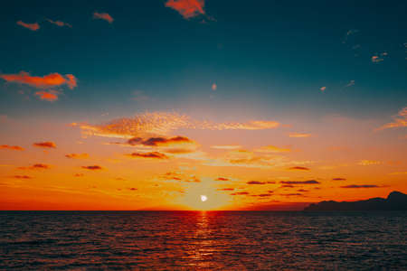 Sunset at the sea, beautiful red orange sky