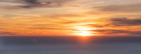 Sunset over the ocean. Beautiful sunset over the ocean. Panoramic view.