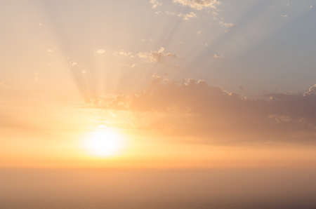 Beautiful sunset sky above clouds with dramatic light