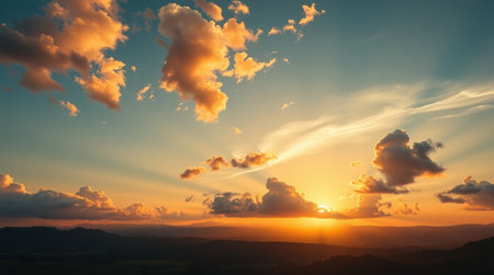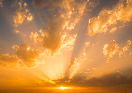 Sunset sky with clouds and sunlight