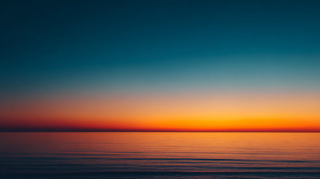 A stunning view of a tranquil twilight sky reflecting over calm ocean waters, showcasing a vibrant gradient of colors that evoke peace and wonder.