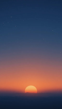 Beautiful sunrise over the sea with starry sky in the background