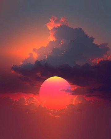 Beautiful sunset in the cloudy sky. 3d render illustration.