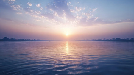 Sacred Ganges River flowing with space for text in the sky or water. Holy river in Hinduism.
