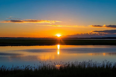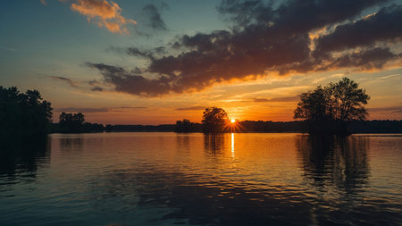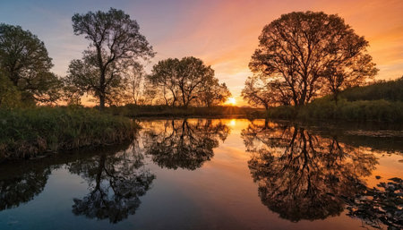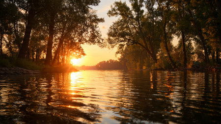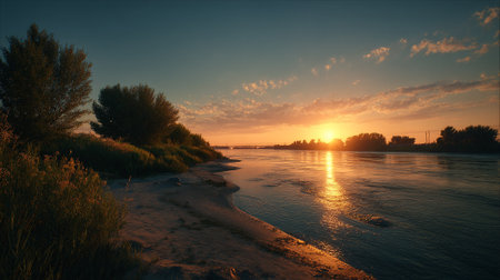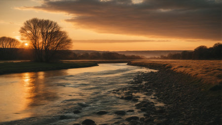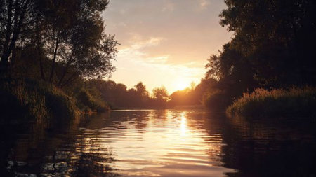 Golden sunset over a tranquil river