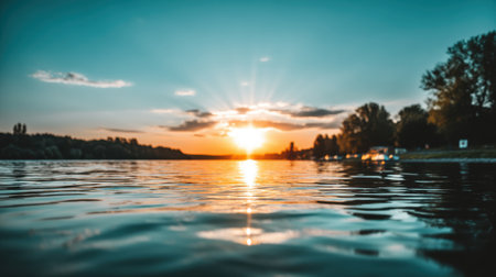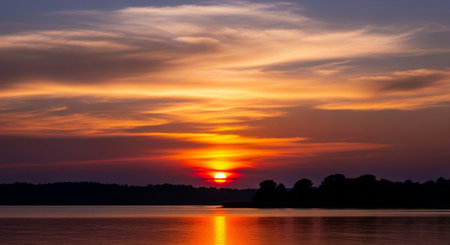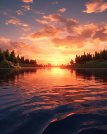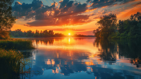 Beautiful summer sunset in the lake or river : Generative AI