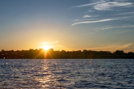 Beautiful sunset over the lake. The sun sets over the lake.