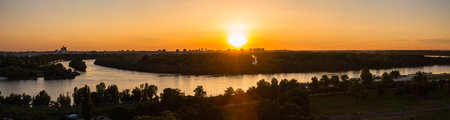 The confluence of the Saba River and the Danube River and the sunset seen from the fortress of Belgrade, Serbia