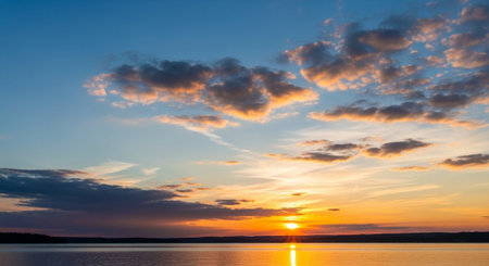 A Beautiful and Stunning Sunset Over Calm and Tranquil Waters Creates a Unique Atmosphere