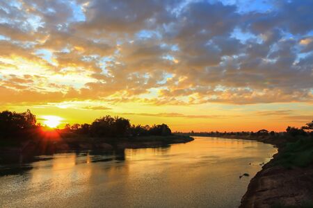 Sun rise River's Edge Morning Clouds in holiday.