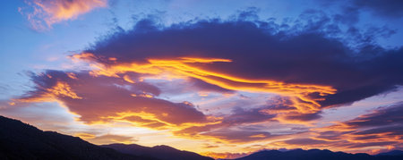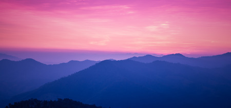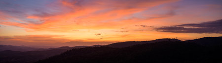 panoramic view of beautiful row of mountains and hills in the evening with wonderful breathtaking sky cloud.