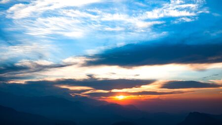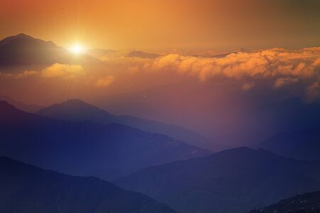 Sunset on the mountain with colorful sky background - vintage filter effect