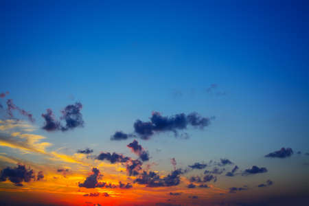 Background of colorful sky concept: Dramatic sunset with twilight color sky and clouds.