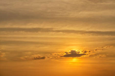 Cloudy sky at sunset or sunrise with bright sun. Abstract background for design.