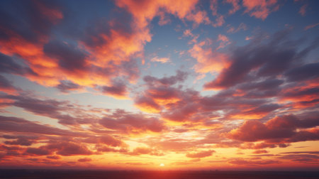Beautiful Twilight sky background. Colorful Fiery orange and red sunset sky.