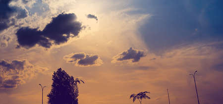 Concept of the weather. Sunny sunset cloudy evening sky
