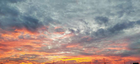Beautiful picture of dramatic sunset sky sith orange clouds