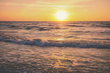 Sunset on the beach, atmospheric mood of sea view concept photography