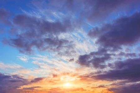 Colorful cloudy sky at sunset. Gradient color. Sky texture, abstract nature background