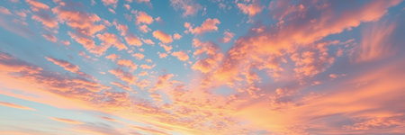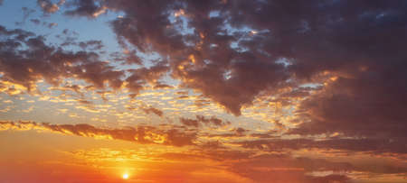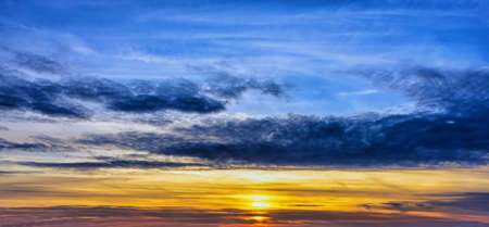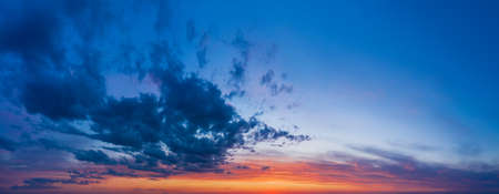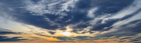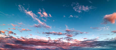 Beautiful cloudscape at sunset. Panoramic view of the sky.