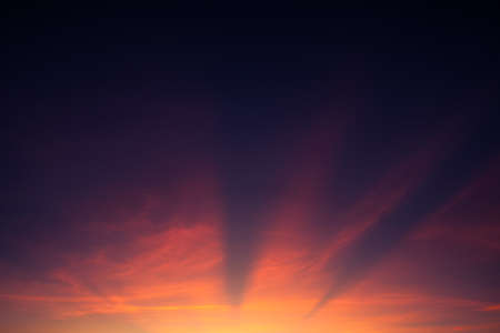 Magnificent bright colorful sky at sunset, nature landscape. Sun's rays break through clouds. copyspace. soft focus.
