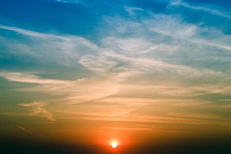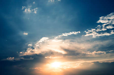Beautiful sunset sky with clouds. Nature background. Toned.