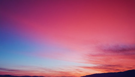 A captivating sunset scene showcases a harmonious blend of colors transitioning from radiant red to serene blue, encapsulating the beauty of twilight in nature.