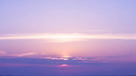 showing serene lavender and pink sunset sky with wispy clouds and faint horizon line. resolution