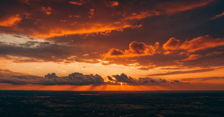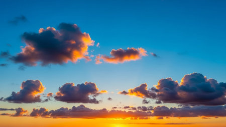 With showing vibrant sunset sky with scattered clouds lit by golden light over the horizon. resolution