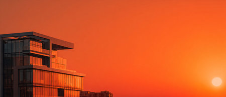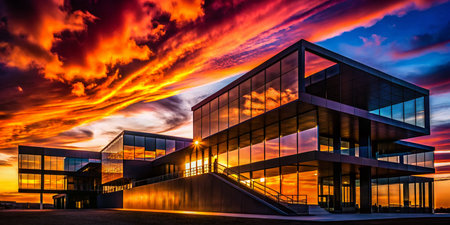 modern building, with dramatic sunset in the background, creating a stunning visual, created with generative ai