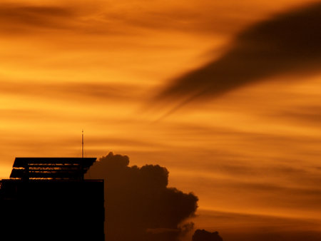 Silhouette building with golden sky in the evening