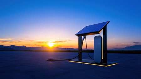 Electric vehicle charger providing sustainable power at sunset