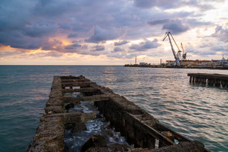 Colorful sunset in the Black Sea, Poti, Georgia.