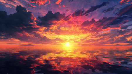 Captivating sunset scene over tranquil water, showcasing vibrant colors and serene atmosphere. Perfect for nature lovers and photography enthusiasts.