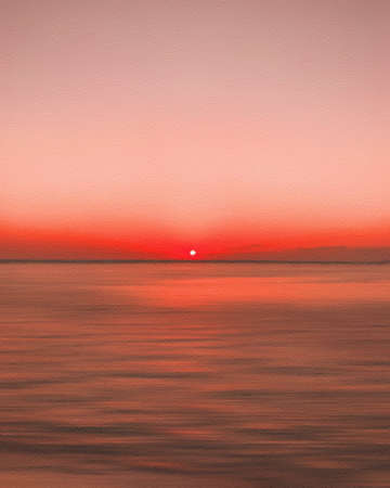 Surreal Ocean Sunset with Large Sun and Vibrant Colors